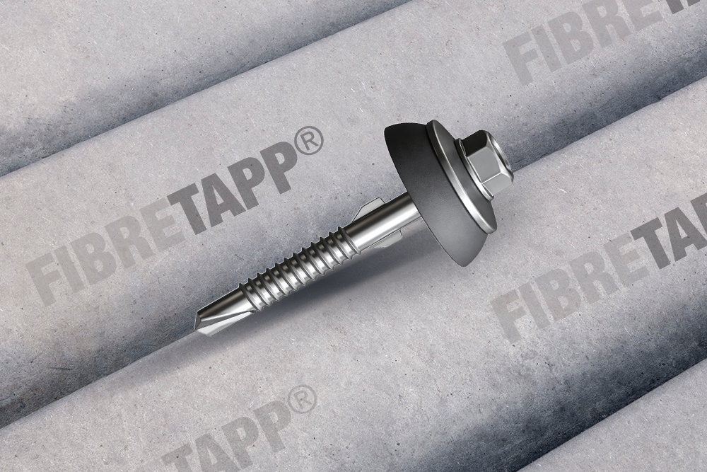Fibre cement roofing sheets need fastening solutions that support controlled drilling and weather sealing—especially in exposed roof zones. FIBRETAPP® Corrugated Fibre Cement Screws are engineered for fibre corrugated sheet fixing into steel purlins, featuring a partial thread with FIBRETAPP® wing and a dome washer system aimed at improving sealing and installation reliability.